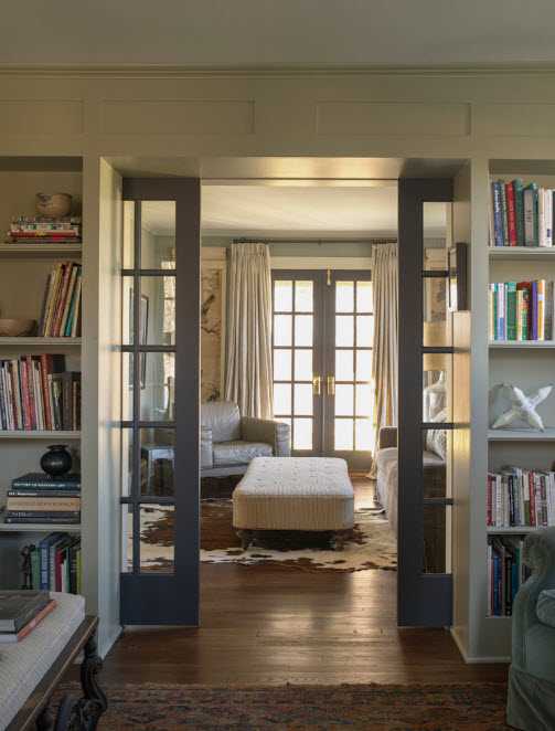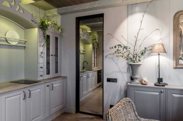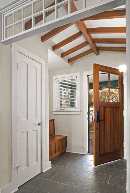 Интерьер в стиле кантри дополнен бежевыми деревянными дверями