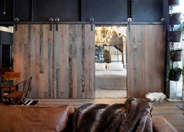 Многие дизайнеры интерьера отдают предпочтение стилю лофт. Дизайн «чердачного» стиля — это сочетание чего-то старого (фрагменты кирпичных стен, открытая электропроводка) и новомодного (современная техника, модные зеркала, металлические панно). В этом интерьере лучше всего будут смотреться массивные раздвижные двери с нанесением эффекта старения. Более подробно разобраться с тем, какие варианты дверей гармоничны для стиля лофт поможет фото.