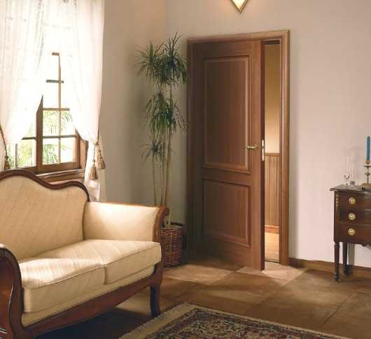 - изделия из массива древесины – неувядающая классика любых предметов интерьера. Такие двери стоят недешево, но и служить могут десятилетиями (двери из древесины могут перейти по наследству вашему подрастающему поколению при правильной эксплуатации). Часто производители используют в качестве основы для дверей древесину легких и недорогих пород (например, сосну), а обшивают шпоном из более благородных видов. Таким образом, удается и себестоимость снизить, и вес изделия уменьшить.