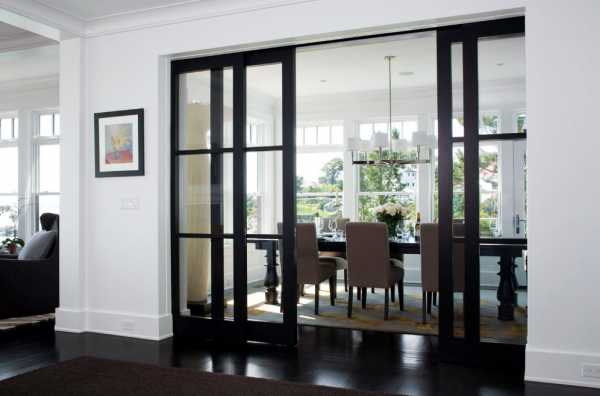 Преимущество раздвижных систем в том, что в открытом состоянии полотна располагаются вдоль стены и не занимают лишнего места. Дизайн раздвижных межкомнатных дверей в интерьере квартиры, фото которых приведены ниже, достаточно разнообразен и может поддержать любой выбранный вами стиль.