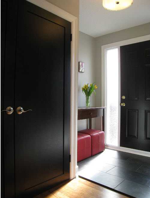 Если же ремонт или изменение стиля делалось после приобретения дверей, а менять их нет возможности, то помочь удачно вписаться в интерьер помогут наличники в тон или контрастирующие с дверным полотном или окраска под нужный цвет.