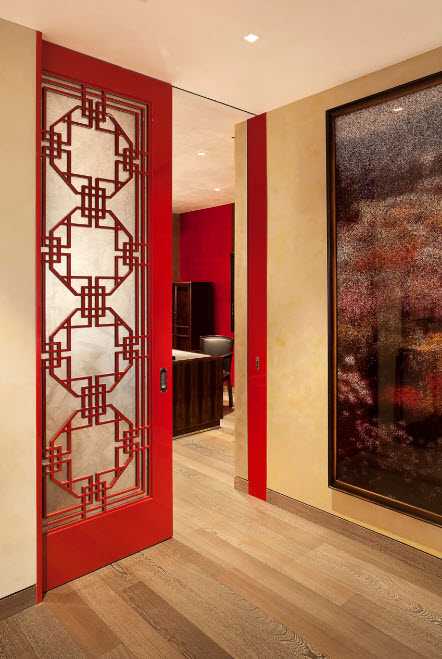 Если светлые стены и не менее нейтральные дверные полотна – это не ваш стиль, если вам необходим яркий, колоритный акцент в интерьере, то дверь в комнату вполне способна справиться с такой задачей. Яркая дверь может быть единственным акцентным элементом или поддерживать тон ключевого предмета интерьера, но в этом случае необходимо точно попасть в тон.