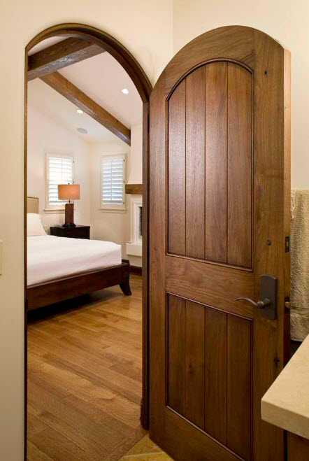 Модели межкомнатных дверей в английском и испанском жанре отличаются в первую очередь материалом и манерой исполнения. Для первых характерна солидность, лаконичность и обилие прямых линий – прямоугольные и квадратные силуэты. Английские модели наиболее часто выполняются из цельного массива дерева и преобладают здесь мягкие спокойные тона, как, например, палисандр и орех.