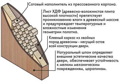 Особенностью современных дверей из шпона является использование срезов дерева. Древесина в последствии обрабатываются специальным раствором, который призван обеспечить надежность и качество дверной конструкции, после чего поверхность покрывается лаком. Многие потребители путают современные двери из шпона с вариантами из массива из-за того, что новые высокотехнологичные материалы зачастую выглядят как минимум не хуже.