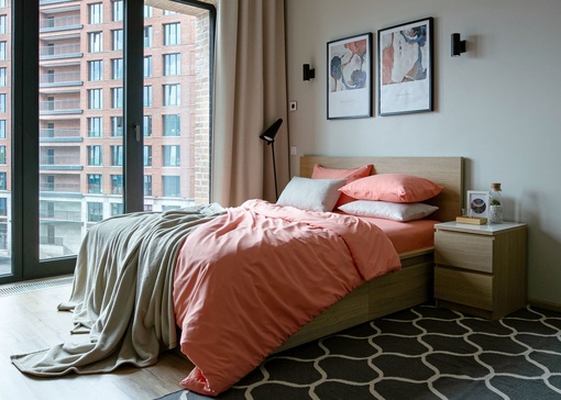 Отдайте предпочтение комплектам насыщенного, но «неомраченного» тона или же используйте светлое бархатное (бархат как никогда в тренде!) покрывало, набросив его на постель.