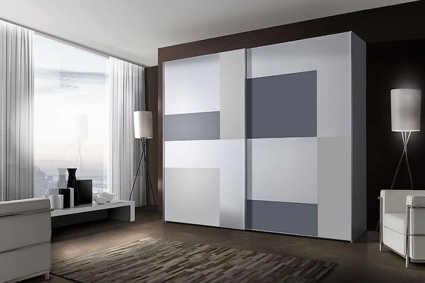 - Дверцы шкафов-купе чаще всего отделаны зеркалом, что визуально делает комнату больше. Это наиболее простой, но и практичный декор.