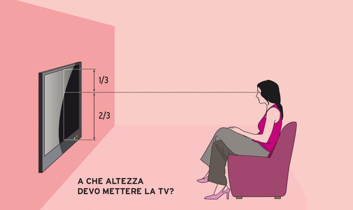 Если движение взгляда влево или вправо можно легко «регулировать» положением своего тела (например, посадкой, небольшим поворотом в сторону или опиранием на удобную подушку), то под высоту так просто не подстроиться. Поэтому нужно заранее повесить телевизор на удобной для просмотра высоте.