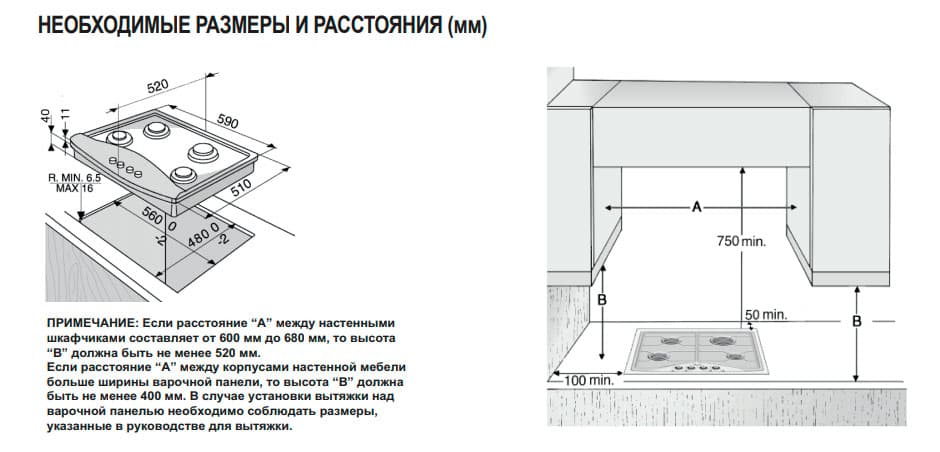 - Как правильно измерить расстояние от плиты и столешницы со встроенной плитой до вытяжки