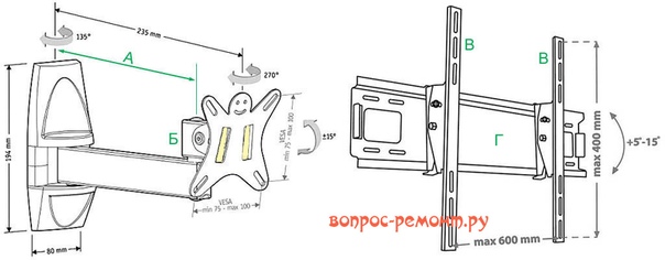 - Нужно оставлять место для возможности поворота техники. Для этого предусмотрены подвижные крепежи в комплекте.