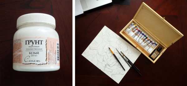 Итак, для начала нужно загрунтовать холст обычной акриловой грунтовкой и дождаться ее полного высыхания.