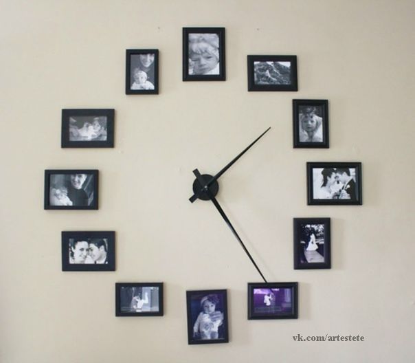 Вот часы своими руками, которые дают вам ежечасно повод ценить ваши фотографии в рамках и сувениры. Чтобы сделать свое, начните с вырезания из белого картона циферблата. Приступите к установке часов, повесив вокруг них дюжину рамок размером 2 x 3 дюйма. Единственная сложная часть, как отмечается в инструкции, — это выбор того, что поместить в рамки.