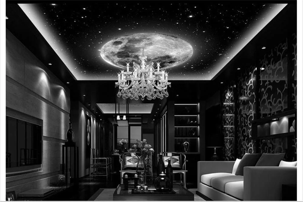 Помните, что темный потолок – это всего лишь фон, с которым можно делать практически все, что угодно, добавляя к нему разные детали.