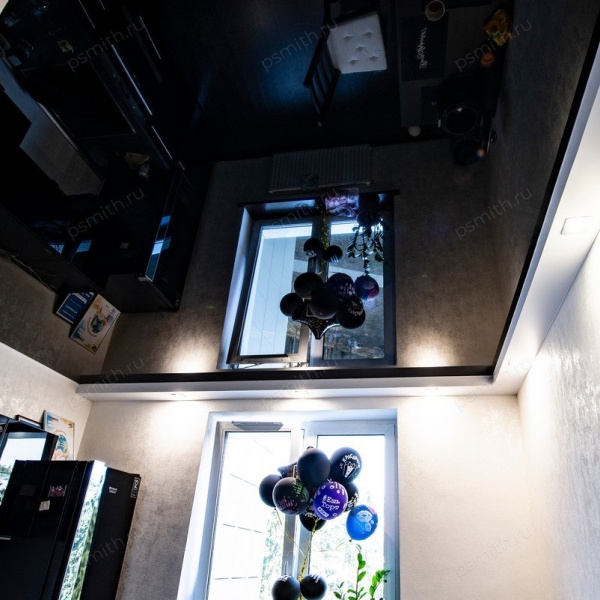 Однако глянцевый черный потолок подойдет не ко всем типам оформления интерьера.