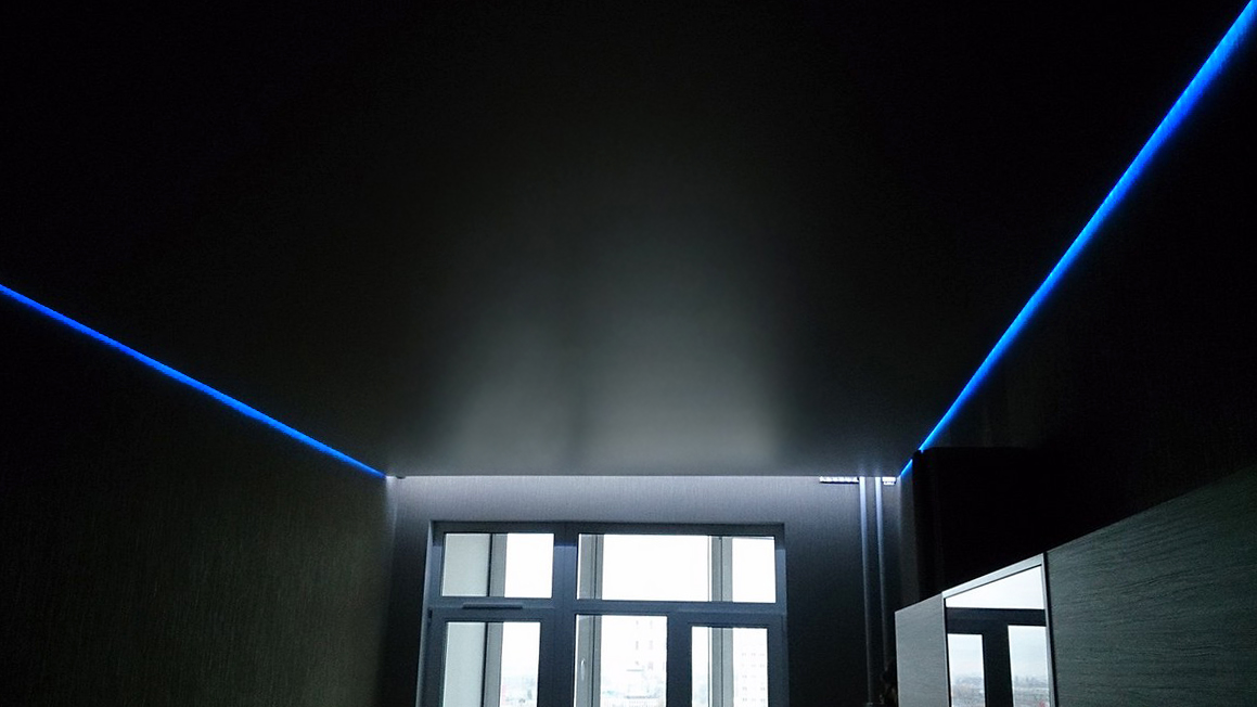 Необходимо учитывать, что черный цвет — достаточно требовательный. Если вы выберите глянцевое полотно, на нем будут заметны все пылинки. В этом плане такие потолки гораздо капризнее белых.