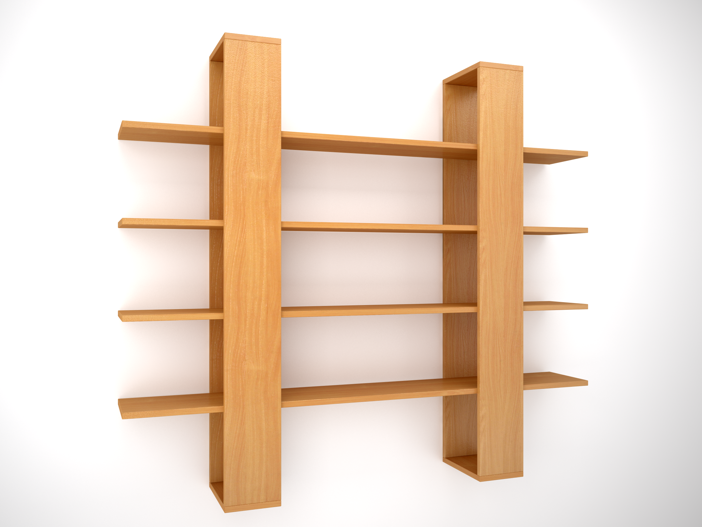 В нашем случае мы выберем стандартный вариант, предполагающий размещение на одной стене сразу несколько полочек для книг.