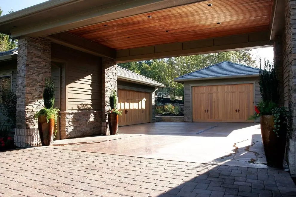 Дверная зона имеет интересный дизайн: видите, как она вырезана для защиты сверху? Мне также нравятся большие двойные двери сбоку.