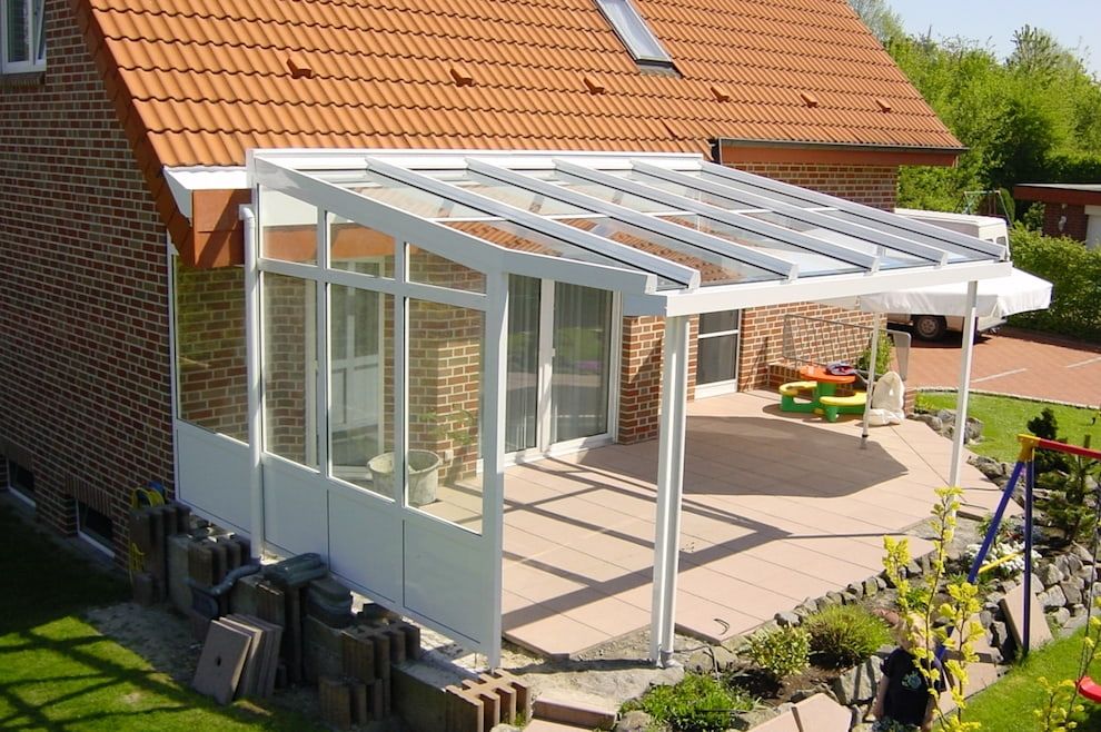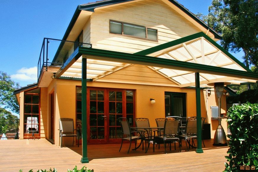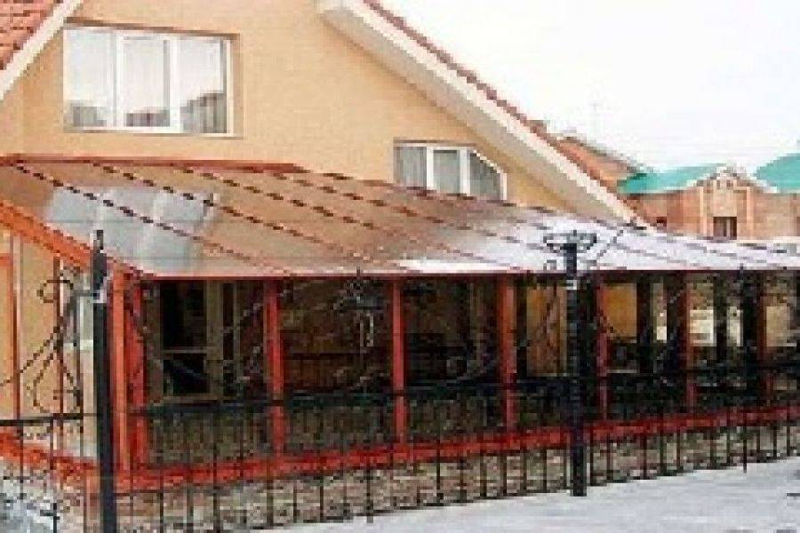 Навес из поликарбоната, пристроенный к дому