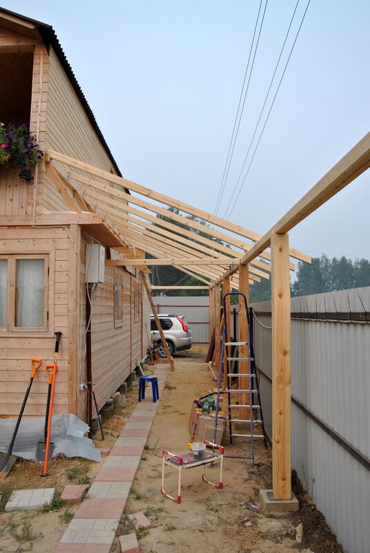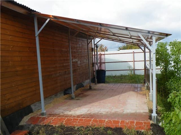 Навес, пристроенный к дому: фото конструкций
