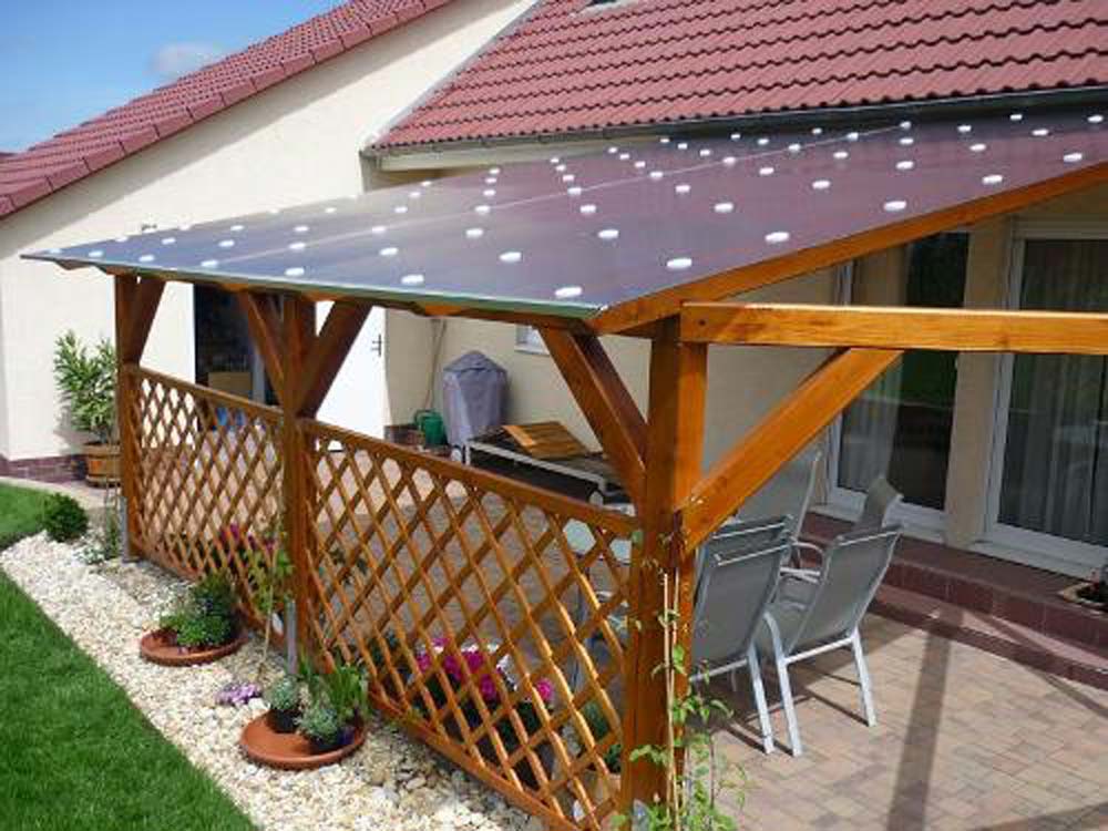 Готовый навес не требует специального ухода. Достаточно время от времени мыть пластик чистой водой, чтобы он безотказно прослужил свои 50 лет.