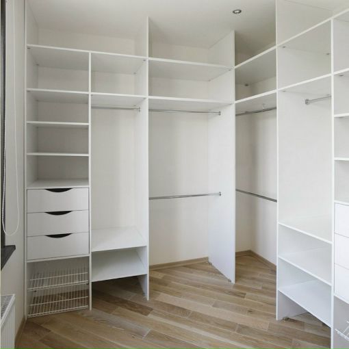 От них напрямую будет зависеть то, насколько крепка конструкция. Примите во внимание тот факт, что в гардеробной, как правило, хранится большое количество вещей, и полки или в целом конструкции надо делать надежными и прочными во избежание повторных строительных работ.
