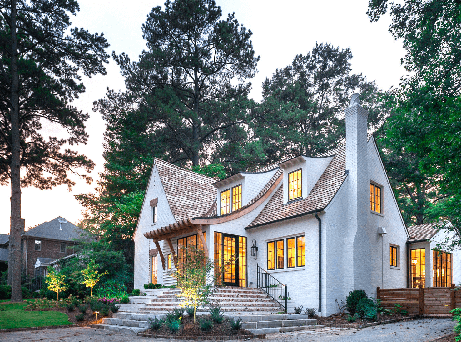 Полезный совет! Кладка из кирпича имеет красивый натуральный вид, но не менее презентабельно выглядят стены, покрытые любой штукатуркой, окрашенные или обшитые сайдингом. Таким образом, классический кирпичный дом довольно легко превратить в современный коттедж.