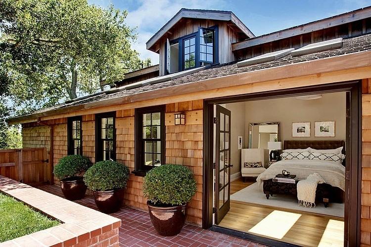 Хозяйственные постройки обычно обустраивают внутри коттеджа или на заднем дворике, оставляя таким образом фасад без лишних элементов
