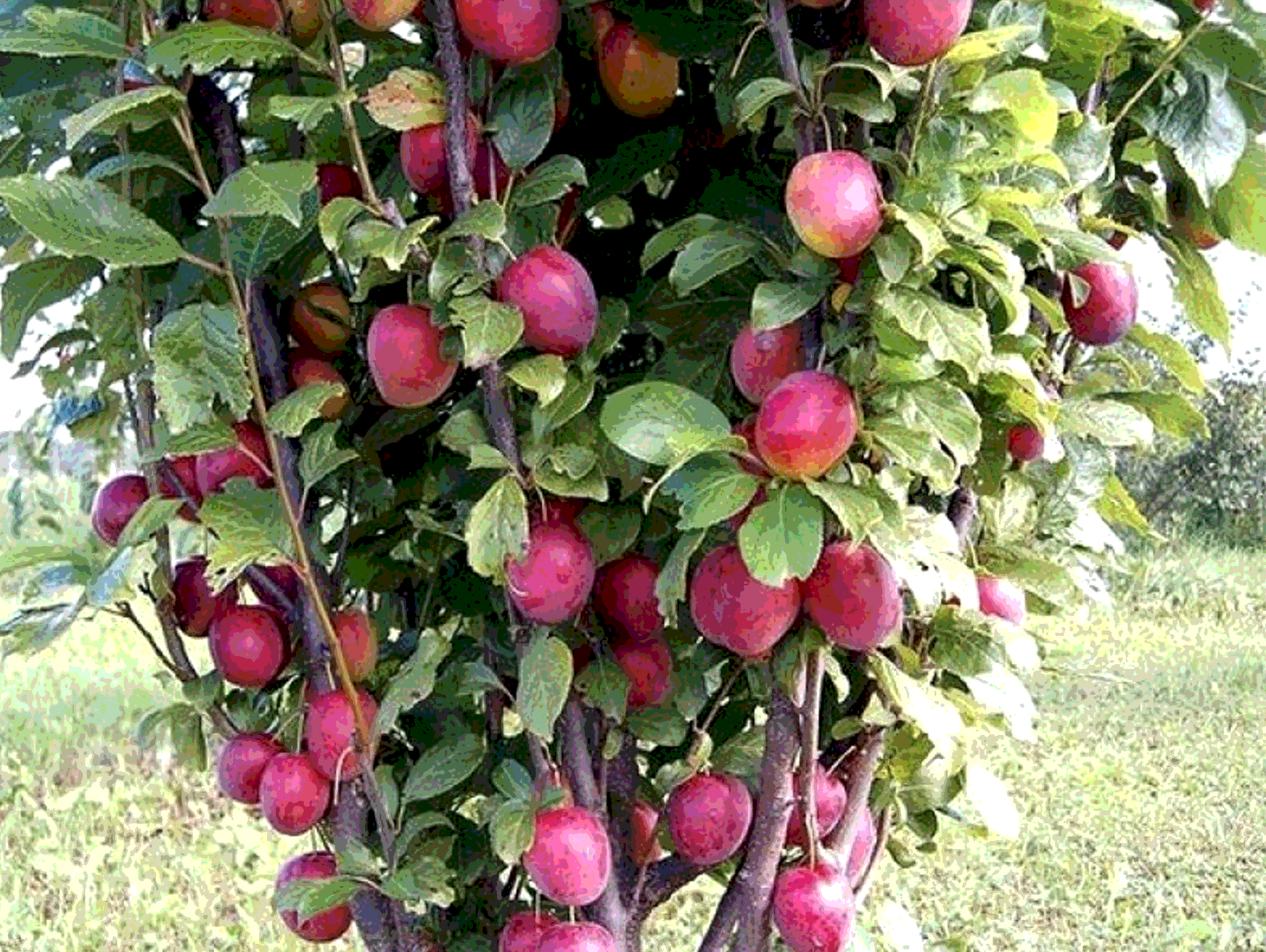 Посмотрите на этот пример 10-летней сливы Santa Rosa, которую выращивали на стандартном подвое, а затем вырастили до 40 дюймов в высоту. Это крошечное деревце дает более 100 плодов в год!