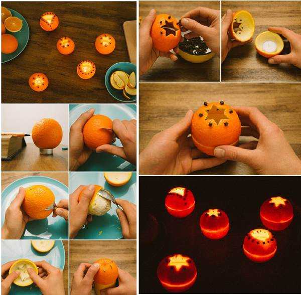 Разрежьте цитрус на две части, удалив всю мякоть. Внутреннюю «хорду» оставляем не тронутой – это и будет наш фитиль. В импровизированную чашу добавляем немного растительного масла. Вот и всё, натуральная ароматизированная свеча готова!