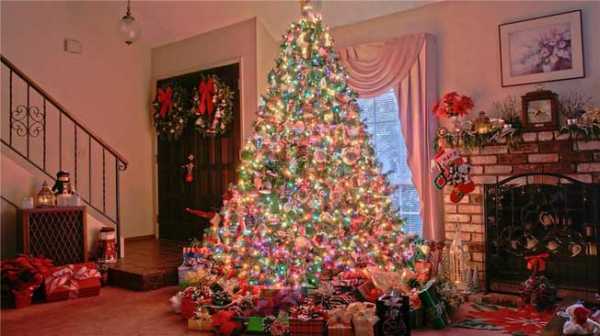 - если в комнате есть высокие деревья, пальмы или фикусы, их можно вовлечь в новогоднюю атрибутику и украсить.
