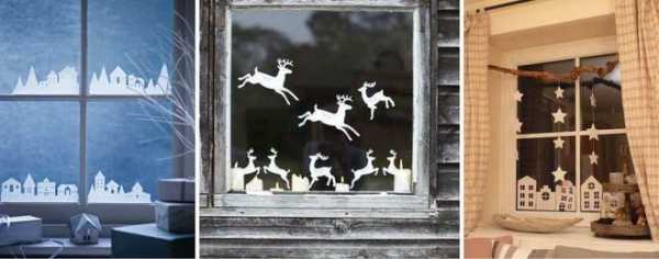 Можно из помощью трафаретов, раскрасить окна, идей очень много, есть такие. Есть и такие красивые украшения, которые можно вырезать из бумаги.