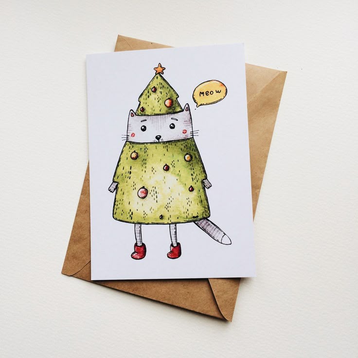 Глад -синяя карта. получатели с забавным всплывающим вечнозеленым деревом внутри вашей самодельной открытки, такой как это праздничное творение от Frida’s Peach.