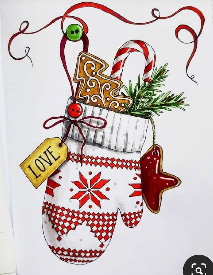 №6. Также предлагаю идею с шаблоном. А смысл здесь заключается в том, что сама открытка имеет необычную форму зимней символики — варежку.