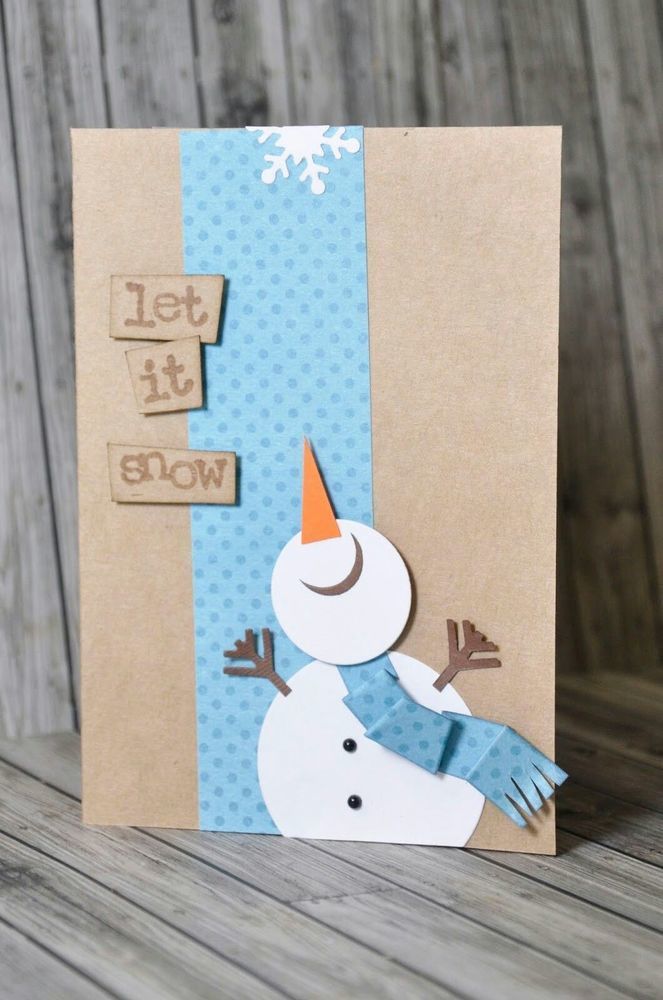 Вырежьте глаза и нос и приклейте их к своим обычным карточкам для заметок или начните с коричневой карточки и соберите снеговика с нуля, используя бумагу, как Кэрол из Carol Payne Stamps.