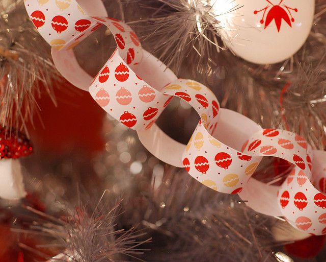 Эта светящаяся гирлянда ярких насыщенных цветов и зеленого картона очень похожа на листья остролиста.