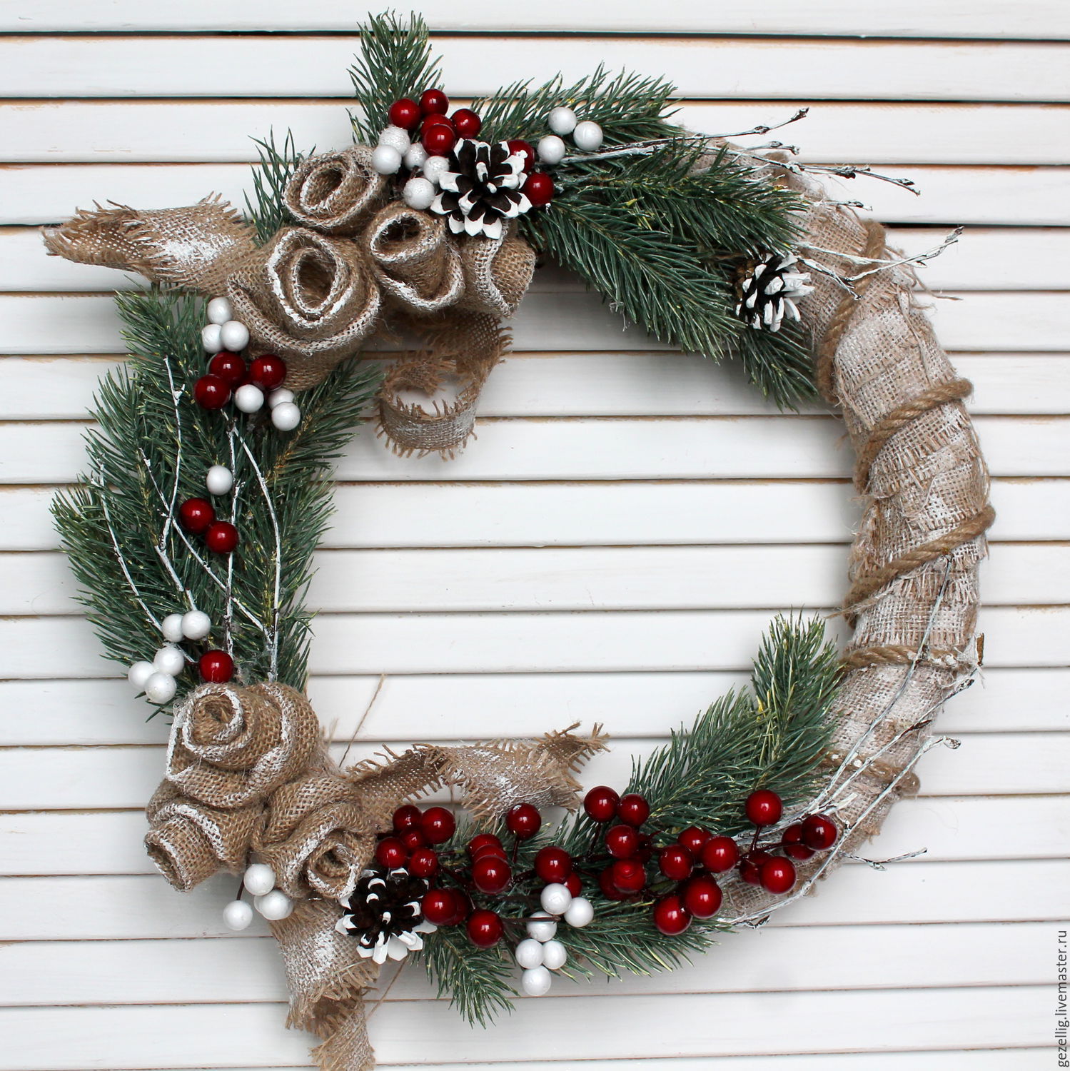 Рождественские фотоэффекты онлайн. Рождественские фотоэффекты онлайн Венок из шишек