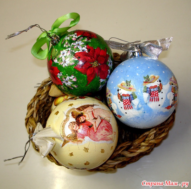Новогодний шарик в технике декупаж Ёлочный шарик (декупаж)Новогодние ёлочные шары из ниток