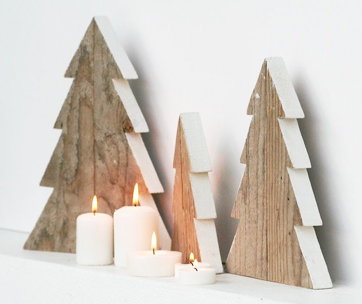У вас нет средств на покупку небольших деревьев? Почему бы не сделать вот такие великолепные деревянные деревья! Раскрасьте их в рождественские цвета и не забудьте про огни, чтобы их было видно издалека.