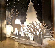 Взять готовый трафарет или самостоятельно нарисовать хвойные деревья, зимний пейзаж, рождественские изображения или другие узоры на листах картона. Вырежьте их канцелярским ножом или ножницами. Склеить картонные украшения вместе, чтобы достичь достаточной длины для вашего подоконника. Должно получиться два отрезка: первый будет изображать ближний план, второй – дальний. Установить их вертикально с помощью импровизированных креплений на кусок пенопласта один за другим.