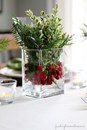 Красивые яркие вазы цвета кегли прекрасно сочетаются со скатертью. Веселые вспышки цвета вызывают у меня улыбку! Попробуйте расписные стеклянные вазы!