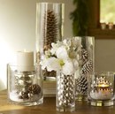 Привнести в дом немножко зимы позволит ваза, декорированная искусственными хлопьями снега. Для этого можно приобрести рассыпчатый материал или в баллоне с распылителем. Работать с ними нужно по-разному. Так, снег в спрее распыляется на веточки. Создается впечатление, будто вы только занесли их с улицы, где бушует метель.