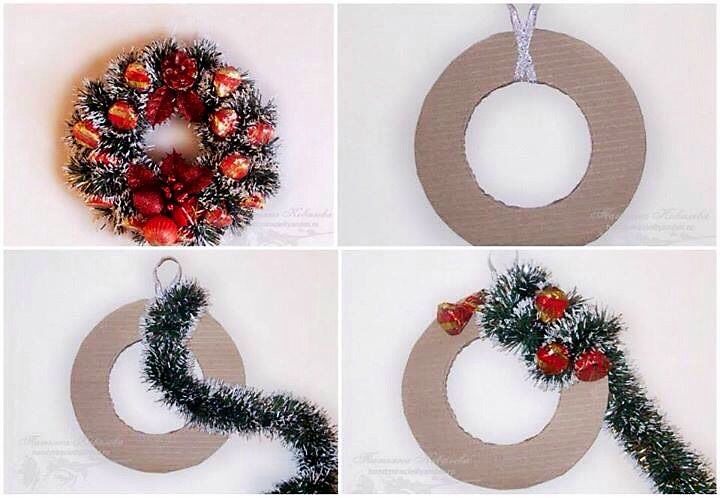 Легко сделать своими руками венок из мишуры: для этого вам надобится совсем немного деталей, времени и сил.
