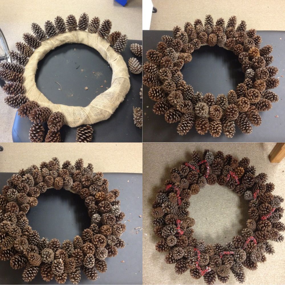 Создать новогодний венок своими руками пошагово можно с применением собранных заранее природных материалов: