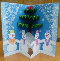 Можно сделать новогодние открытки своими руками с детьми с изображением снеговика