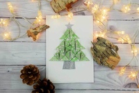 - Из зеленой бархатной бумаги по предварительно сделанной выкройке треугольника вырезаются полоски, края обрабатываются фигурными ножницами или оставляются ровными. На открытку наклеиваются полоски с небольшим интервалом друг от друга – получилась елочка. Можно взять бумагу разных оттенков зеленого, тогда елочка приобретет натуральное разнообразие зеленого цвета.
