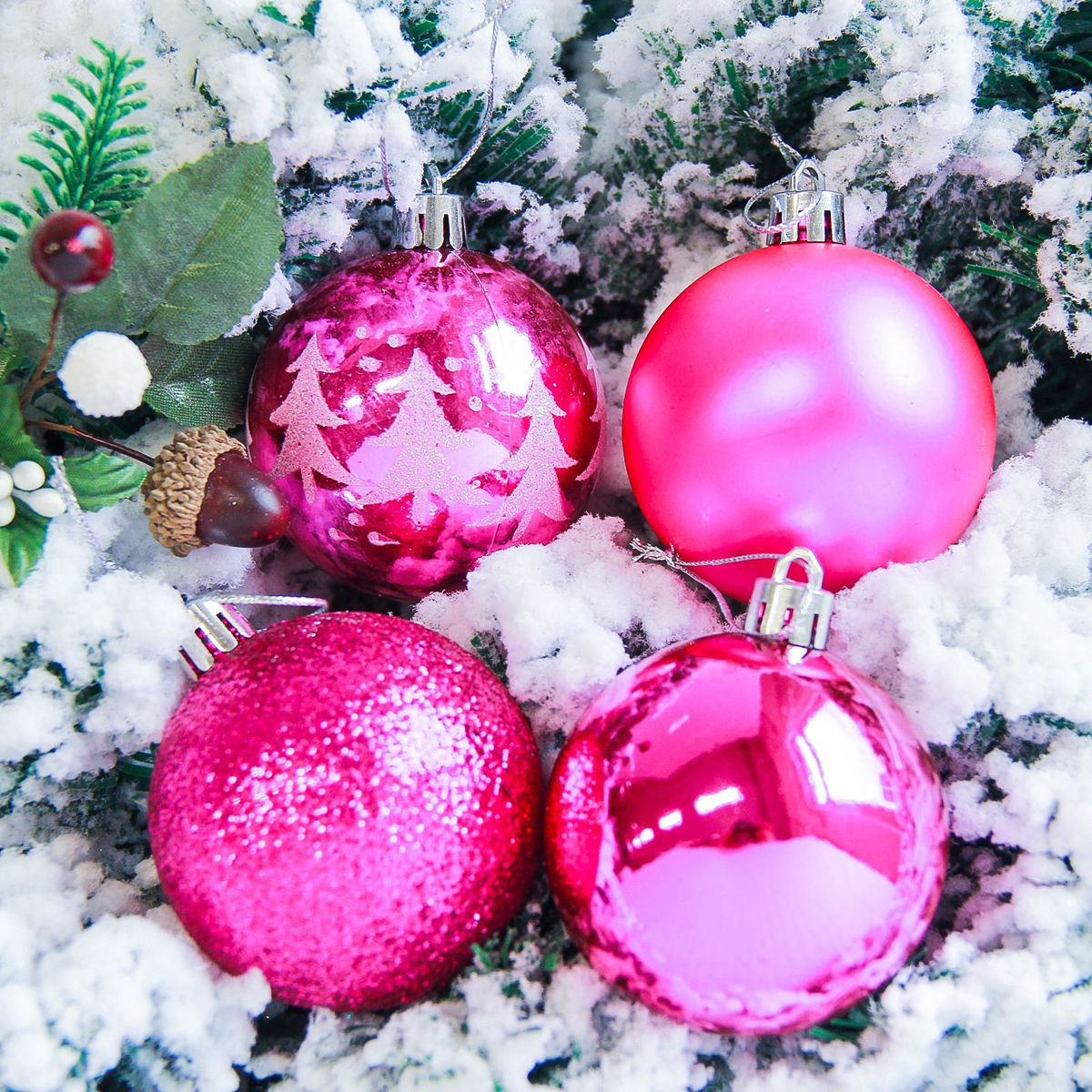 Также обратите внимание на набор шаров в тубе и единичные новогодние игрушки в одном цвете.