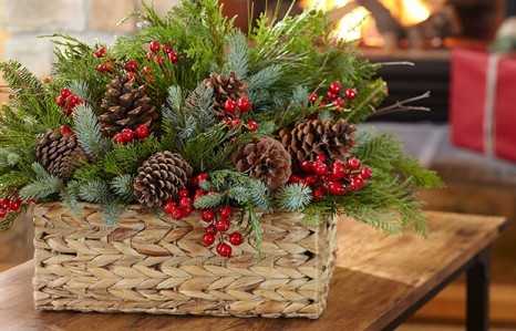 Украсить получившуюся композицию рекомендуется еловыми ветками, шишками и зимними ягодами.