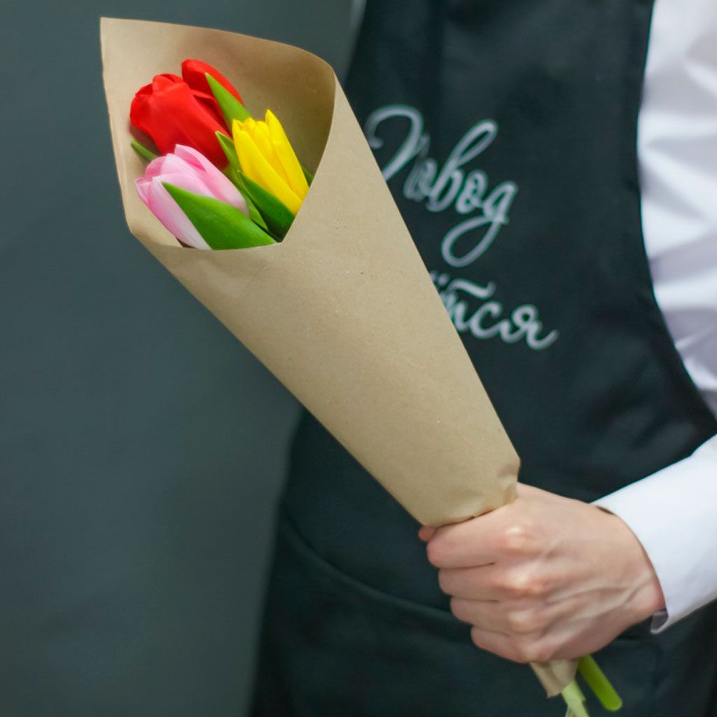 Оформление букета в крафт-бумагу даёт возможность окружающим в полной мере оценить всю роскошь и совершенство цветов.