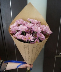 Не только розы оригинально смотрятся в таком убранстве. Оно отлично дополнит абсолютно любую цветочную композицию. Даже самые простые и лаконичные ромашки озарят яркими солнечными лучами свою обладательницу, если суметь правильно завернуть их в крафт-бумагу.