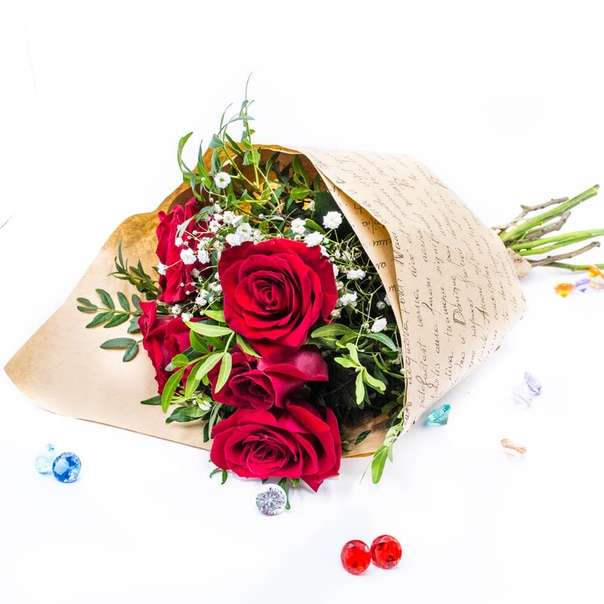 Флористы часто используют различные бусины, броши, хлопок, веточки и сухоцветы для украшения букетов. Такой декор делает букет цветов уникальным и стильным.