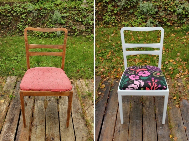 Вам всего лишь понадобится отсоединить заднюю часть старого стула, обработать ее наждачной бумагой и покрасить.
